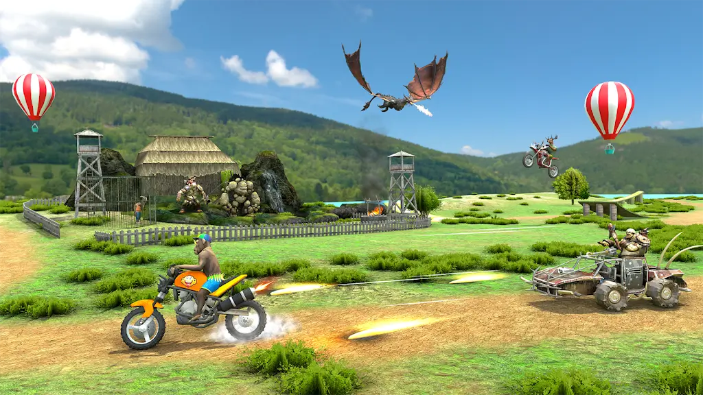 这款游戏体验非凡。玩家驾驶摩托穿越多样场景,与各种怪兽展开生死较量。游戏目标明确,要救出被困山羊。敌人类型丰富,像犀牛、大猩猩、山熊、喷火龙和岩石怪兽等,各有攻击方式,考验玩家反应与驾驶技巧。精确驾驶和特技很关键,能提升逃脱几率。多样环境设置独具特色,不同场景有不同挑战。多种游戏模式带来驾驶乐趣,完成挑战有丰厚奖励。其MOD版本更刺激,加入变速功能且去除广告,能让玩家尽情享受无干扰的追逐之旅。