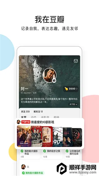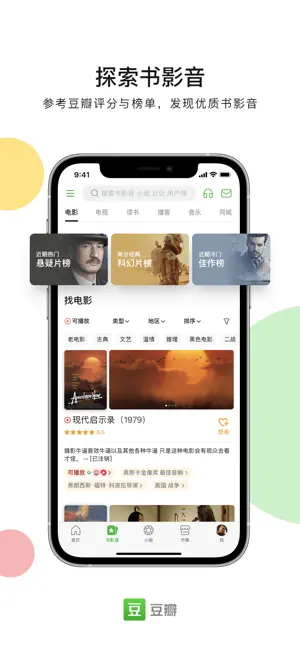 豆瓣是一个充满魅力的文化生活社区。它汇聚超8800万真实用户,覆盖电影、电视剧、图书、音乐等全品类内容。在这里,每部作品都有真实观众打分评论,评分客观可信。无论是资深影迷书虫乐迷,还是文化探索者,都能找到值得信赖的参考、志同道合的伙伴和激发灵感的内容。豆瓣小组让你找到兴趣相投的人,深入讨论寻找共鸣。豆瓣集市能分享好物。在这里,世界更开阔,自我能自在生长,绝对是文化爱好者的好去处。