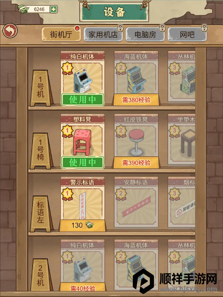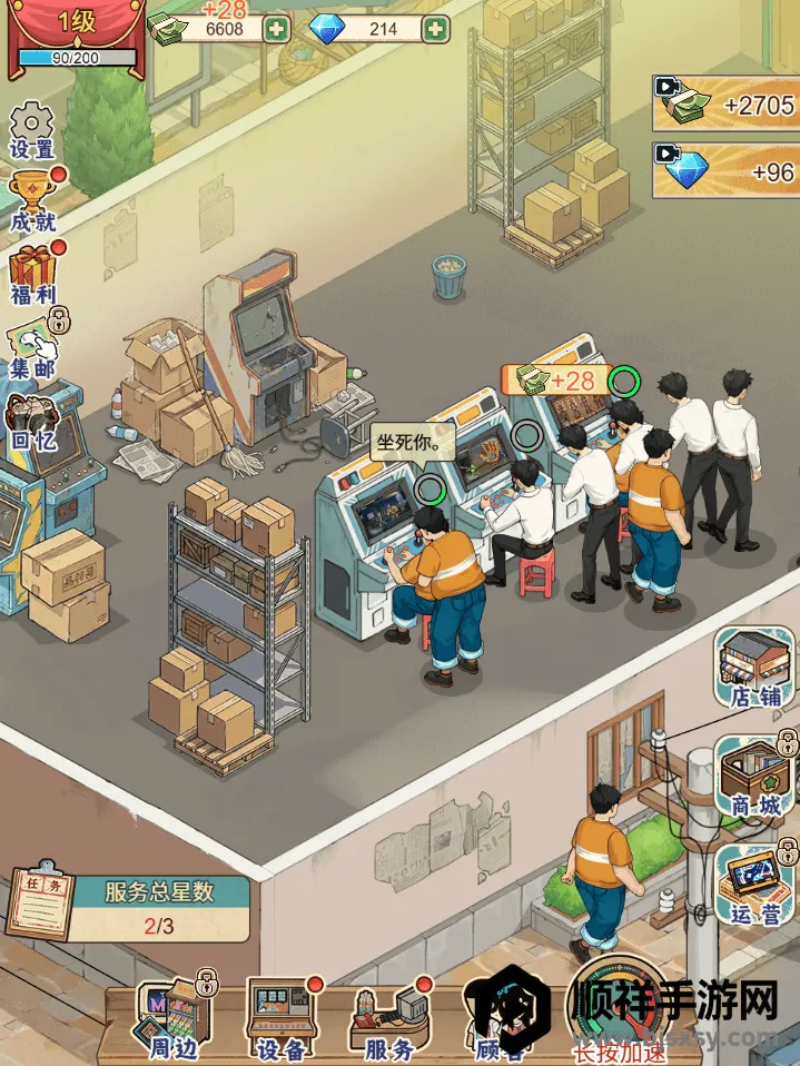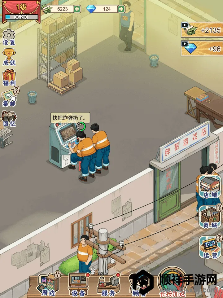 2、丰富多样的经营体验:要跟着老板娘清点货物、擦拭街机,为客人递币、留意机器故障,根据客流调整运营,还能学习打理店铺窍门,解锁更多时代元素,不断壮大铺子版图。