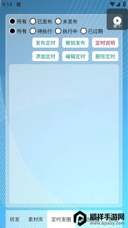 定时自动发圈是一款超棒的社交媒体智能工具。它能解决咱们发朋友圈的不少难题。操作简单,支持文字、图文、链接等内容定时发布,还能批量发送。有丰富的文本、图片及视频模板,帮咱轻松创作高质量朋友圈内容。能在线跟踪转发好友朋友圈,一键批量微信设备设置发圈,多类型朋友圈定时发送,统一云控管理。一键配置发送时间、频率、内容和评论后,就能全自动发圈推广。使用时,打开应用可下载好友朋友圈素材,在素材库管理发圈素材,随时设置本机定时发圈任务,还能在线跟踪转发。它还能下载自己的朋友圈,提供素材库资源,节省发圈时间,实现同步发圈。有了它,发朋友圈轻松又便捷,满足你的多样需求。