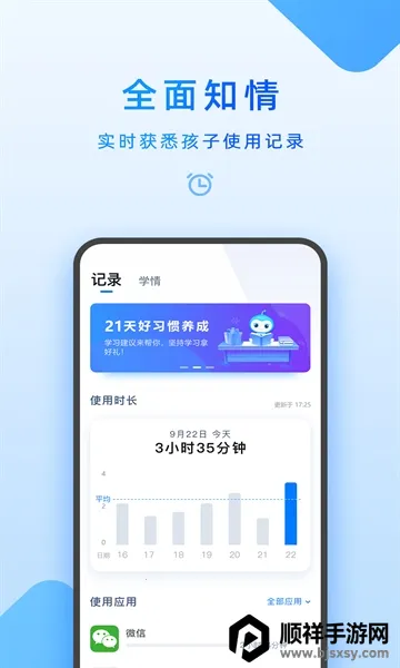 2. 有效管控孩子应用使用。可管控孩子下载和使用的应用,限制娱乐应用时长,还能过滤不良网站,引导孩子绿色上网,为孩子营造健康的网络学习环境。