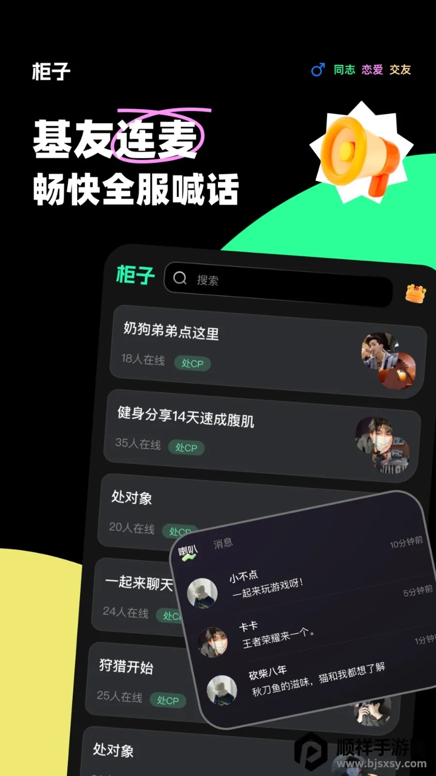 1. 纯男性声音社区,严格限定性别为男性,营造专属社交环境,聚焦男性话题,归属感十足。