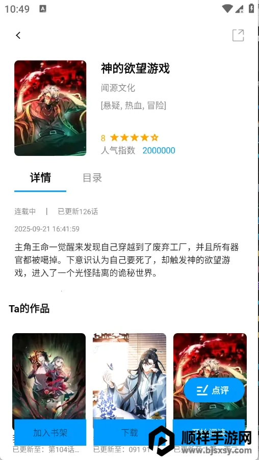 3. 多样阅读体验:支持漫画章节离线下载,无网络也能随时阅读;拥有多种阅读模式,可横竖屏切换,支持单页滚动等多种翻页方式,还支持点赞、评论、分享功能。