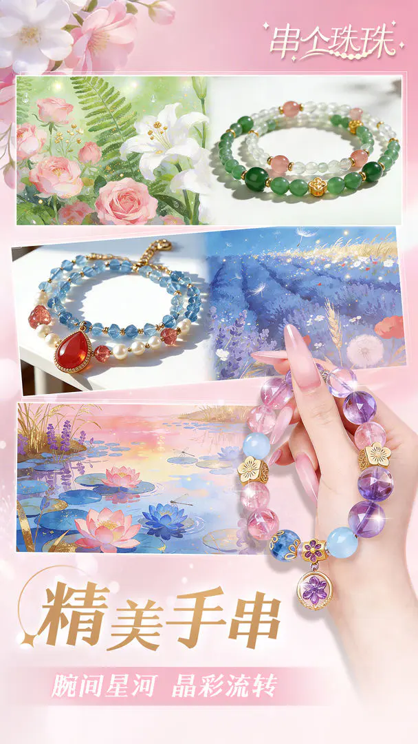 想玩串个珠珠游戏却不知咋玩?这攻略来啦!在这游戏里,你能当手串摊主,开启创意经营之旅。面对顾客各种订单,用如水晶玉石等珠子按需求定制手串,完成一单就能赚钱、获材料和经验值,提升制作技能。为得更多材料,要通过新颖有趣的小游戏解锁珠子,既考验反应力又激发创造力。随着游戏深入,能解锁珍稀物料,摊位也从简陋变热门打卡点,吸引更多顾客,体验经营成功。还能结合各种珠子发挥创意,定制独特手串赚钱。而且能和朋友分享作品、PK,交流创意、学技巧。总之,这游戏集经营、创意、休闲于一体,让你轻松体验手串制作乐趣与经营挑战,一步步实现商业梦想,超好玩!