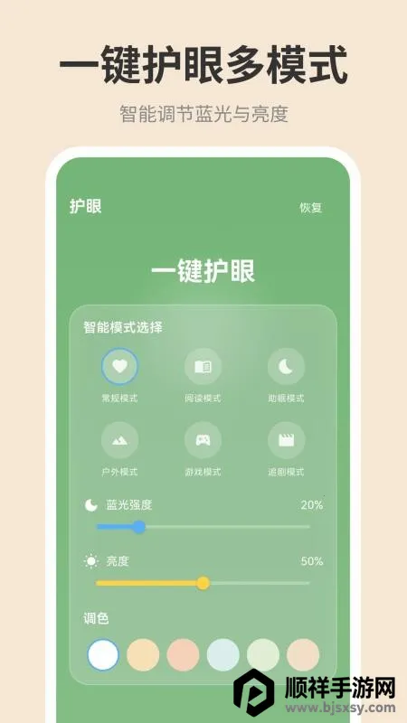1. 操作简便,按需求手动调节亮度与蓝光强度,带来优质用机体验。