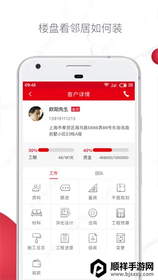 4. 多样功能助力:具备项目跟进、客户详情查阅、工程预算预测、客户搜索查找、项目动态阅览、工作进展跟踪等功能,为工作带来诸多便捷。