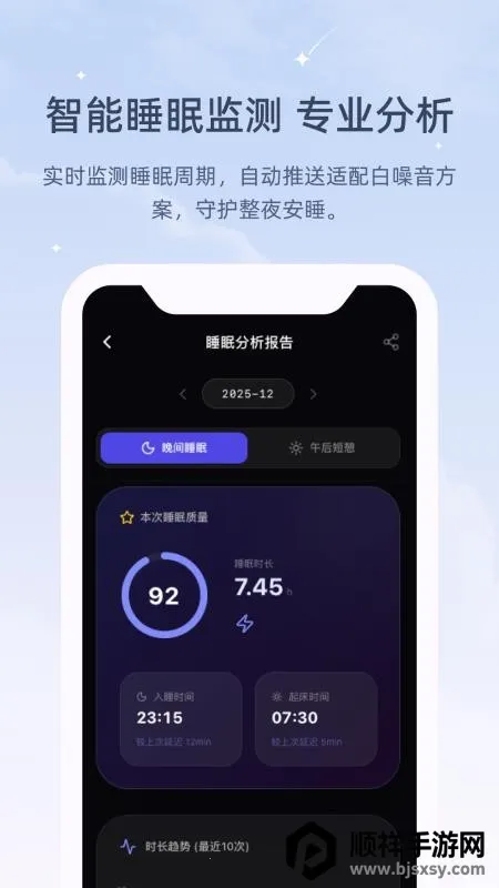 冥想睡眠仪是专业智能助眠软件,适配不同人群。有海量助眠音乐,能追踪睡眠数据。提供专业冥想引导与声音疗愈,可自动推荐音效,生成专属音效,查看睡眠报告,缓解失眠焦虑。