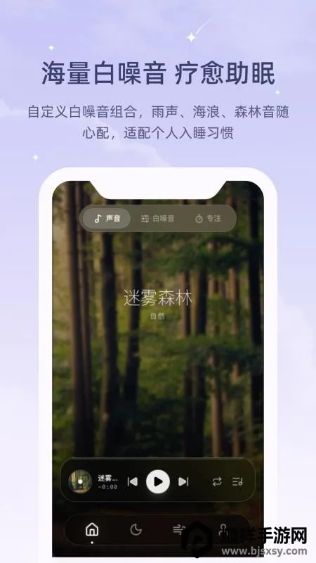 3. 提供专业的冥想引导和声音疗愈,从根源调整身心健康。早间唤醒和夜间助眠都很方便,能找到适合自己的白噪音和疗愈方案。而且可以保存喜欢的睡眠音效,自动推荐多种音效,甚至能按喜好生成专属音效,每天查看清晰的睡眠数据和分析页面。
