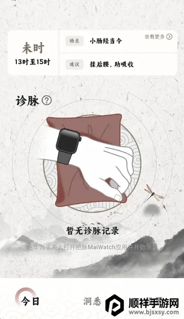 2、进入软件今日页面,带上华为手表即可开始诊脉