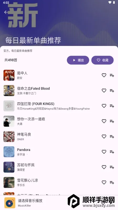 MusicKiller2026最新版本是一款免费音乐应用,有无损音质,无广告。支持搜索、下载、收藏,具备个性化设置、无缝播放等特色。界面简洁易用,可离线播放。能解析歌单、识别专辑歌曲,曲库丰富,满足多样听歌需求。