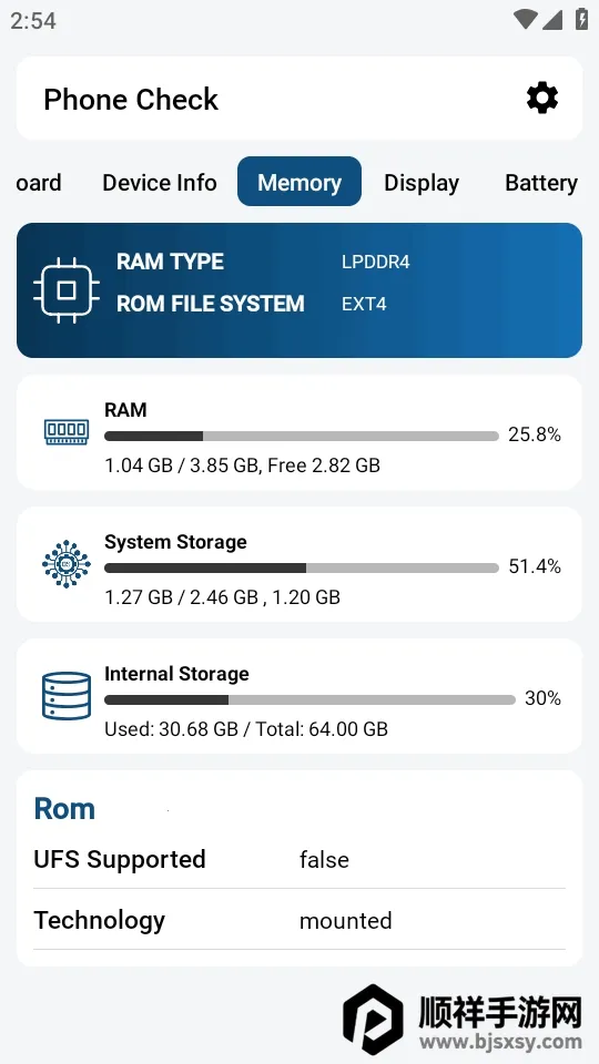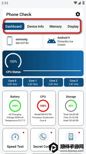 Phone Check设备检测2026官方正版是国产免费安卓手机设备检测软件,可实时监控信号硬件,助用户了解设备参数与运行状态,涵盖查看基本信息、CPU信息、维修状况、Root状态等功能,操作便捷。