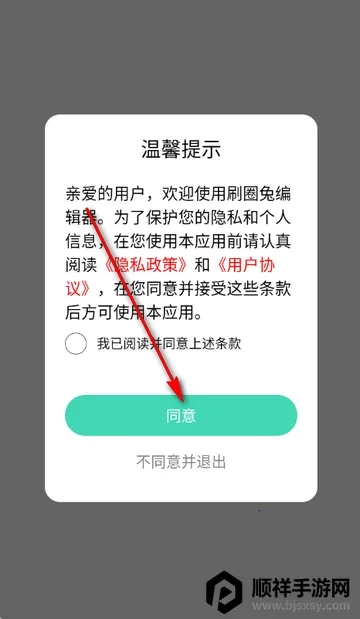 1、打开刷圈兔编辑器app,点击同意隐私政策