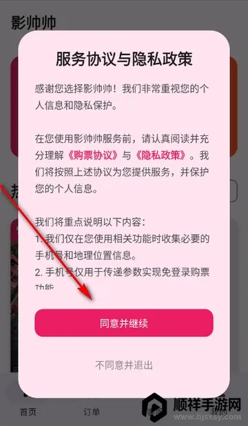 1、打开影帅帅特价电影票app,点击同意隐私政策