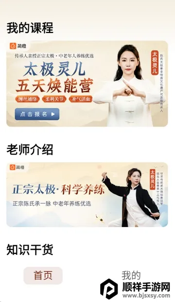 1、打开太极讲堂app,进入软件首页,可查看我的课程老师介绍等