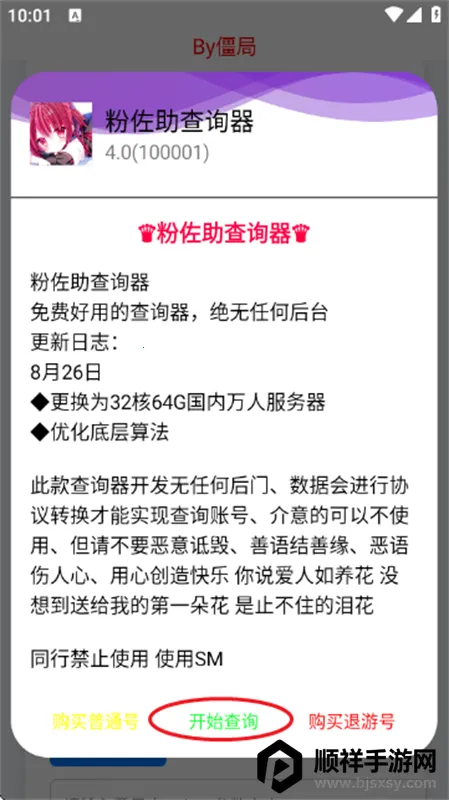 粉佐助查询器最新手机版可精准查询iOS和安卓区服账号信息,含角色等级等。能分析活跃度、展示忍者详情、统计资源。查询速度快,支持离线,免费且功能全,还有账号交易服务,助玩家畅享游戏。
