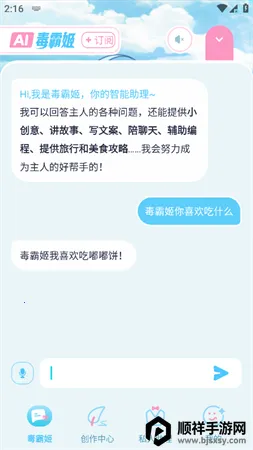 毒霸姬是一款超棒的软件,不开会员也能尽情玩。它功能超多,能智能对话陪你聊天,随时倾诉想法,给你情感陪伴和信息支持。还有强大的写作助手,输入主题就能获得创作辅助,帮你轻松写文章。它的桌面宠物超有趣,能切换可爱形象,日常使用时会给你实时陪伴和趣味反馈。而且它高度重视隐私安全,交流氛围轻松无压力。不管是想找人聊天、寻求写作帮助,还是和虚拟角色互动,它都能满足你。操作界面直观,功能分区清晰,各项任务完成起来都很便捷。有了毒霸姬,能轻松解决你日常的各种需求,给生活增添不少乐趣,快来试试吧!