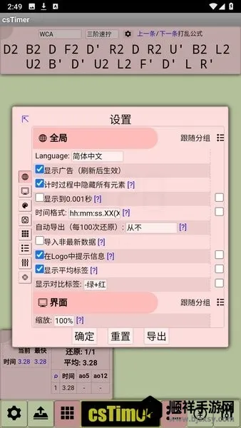 2. 成绩备份多样:可将成绩备份到本地文件、csTimer的服务器或Google存储,防止丢失。