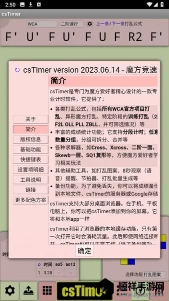cstimer虚拟魔方2026最新版本是专业魔方计时软件,可连众多智能魔方。有完整教学体系,支持三阶至五阶魔方教学及多种特色功能、优势与亮点,如丰富成绩统计、多种求解器等,使用说明详细。