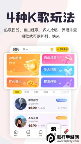 1. 多人抢唱:创建K歌房和朋友一起玩,不以SSS论英雄,沙雕歌神各显神通。