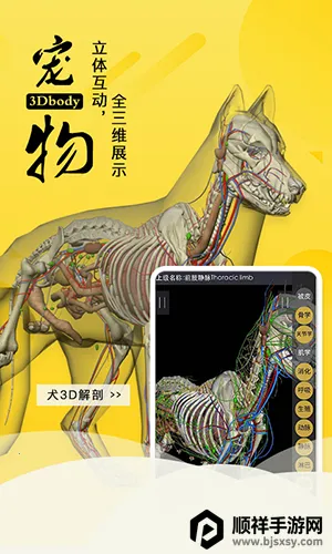如果你是一名兽医,或者对宠物医学感兴趣,那么“3dbody宠物”这款软件绝对值得拥有!它由上海桥媒信息科技有限公司研发,是专门为兽医打造的三维宠物学习软件。通过它,你可以直观立体地了解不同宠物的身体结构,掌握更多知识。这里有300多个以上的视频和动画,海量真实案例,让你更深刻地了解每一种宠物。要是哪个部位看不清楚,还能放大处理。软件内容详实丰富,动画视频清晰,分类明确,操作方便。能全三维展示狗猫的各种系统结构,数千个结构可任意角度观察、组合,还能放大缩小平移等。可层层剥离观察解剖结构,介绍猫狗疾病学,涵盖多种病症。科目划分细致,犬类有耳科、眼科等多个科目,猫类也有相应划分。有立体互动,全三维展示,功能强大,数据详细紧密贴合教材,动画清晰直观又便捷,能很好地满足你学习宠物知识的需求。