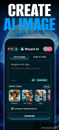 Wizard AI是一款强大的AI图像生成软件,输入关键词就能生成各类艺术图等,可自定义参数。它功能丰富,有语音、搜索等功能,图片能保存分享,还能生成视频。能自定义AI角色性格,隐私安全,无水印保存,还有多种优势。