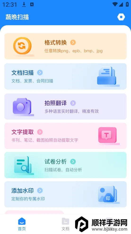 2、进入首页可以看到丰富的功能,点击【文档扫描】进入。