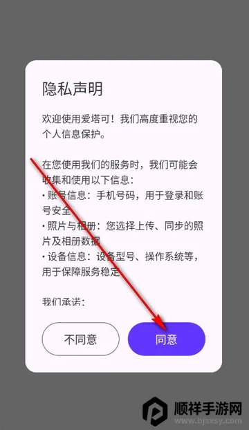1、打开爱塔可app,点击同意隐私政策