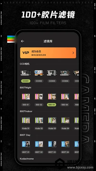 CCD质感胶片相机是复古摄影APP,有质感胶片色感,原片直出。一键呈现逼真胶片摄影,可自由预览效果、设置参数。提供多样滤镜,有照片姿势库,支持导入图片加滤镜,还有经典时间戳与拼图工具。