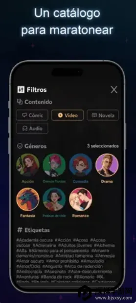 1. 提供多样化内容,涵盖Webtoons、动画短剧、网络小说与音频故事等,满足不同用户喜好。
