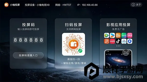 小柚投屏电视版是一款超棒的大屏投屏软件,专为智能电视用户打造。它能在安卓系统电视上直接安装。连接超简单,微信扫一扫或输入投屏码就行。