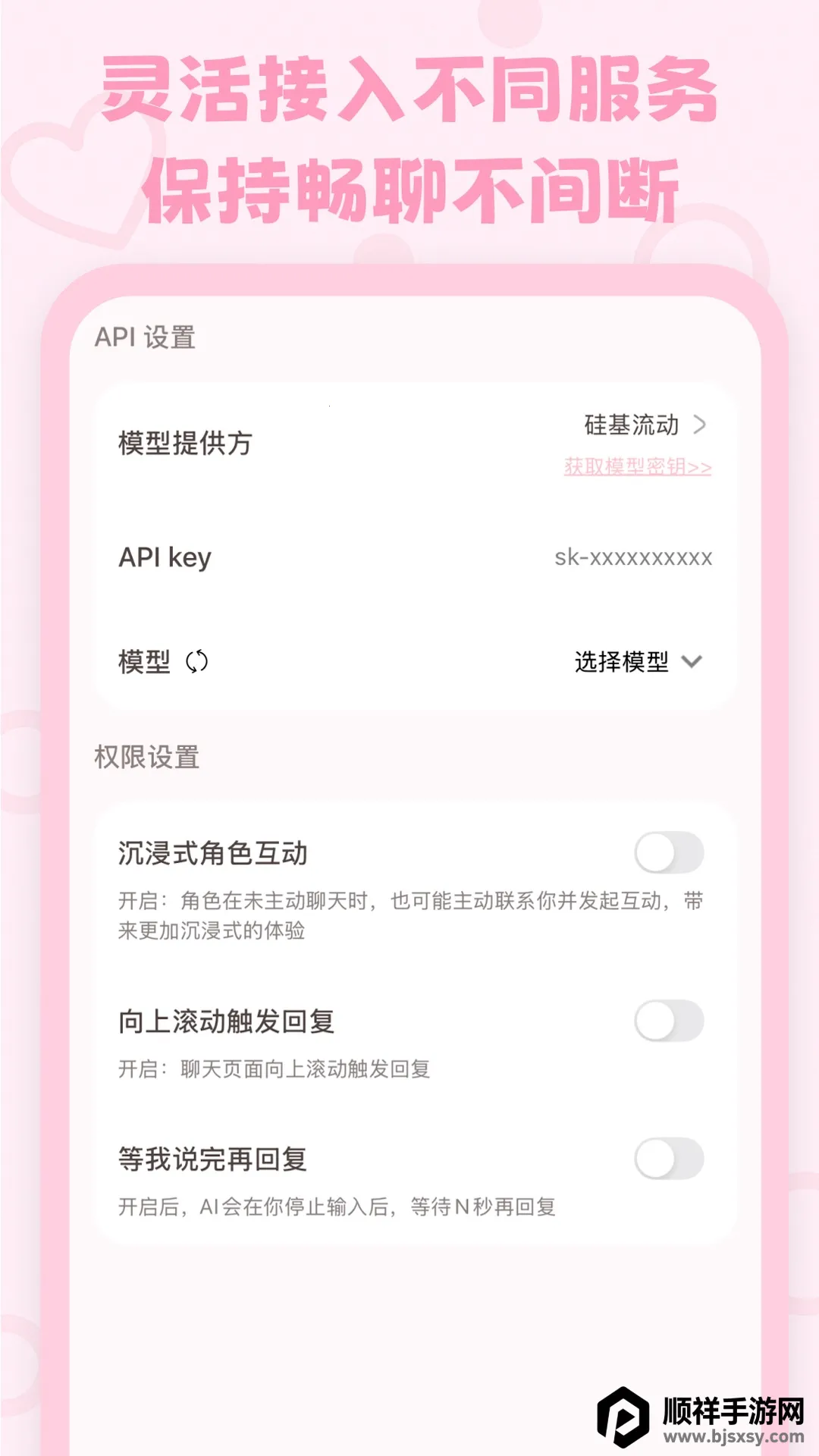 想知道在Lovemo里怎么发消息吗?这款超棒的虚拟陪伴社交软件能满足你。它以AI为核心,主打个性化与沉浸式情感互动体验。你可以自由设定虚拟机器人的性格、性别、名字、背景等,打造专属的聊天伙伴。这里有多种实用功能,像日程管理、天气预报等,增加了不少便利性。聊天时,能精准捕捉隐晦表达与情绪倾向,给出贴合的回应。还能一键切换预设角色,适配多样情绪场景。而且支持文字、语音、视频等聊天方式,沟通超方便。所有数据加密传输与存储,聊天记录仅本地留存,保障隐私。操作也不复杂,打开软件用微信登录,点击右下角“我”页面,选API设置,获取APIKEY填入即可开始聊天。快来Lovemo,享受有趣又私密的聊天时光吧。