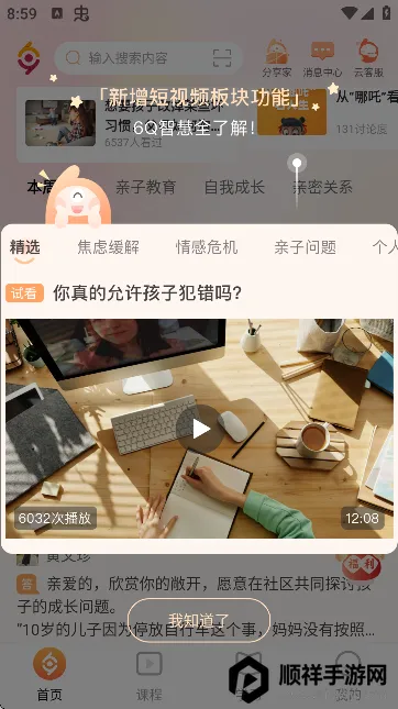 课程形式多样:拥有视频、图文、直播等多种课程形式,满足不同家长的学习偏好。家长可以随时随地根据自己的时间和需求,选择适合自己的课程进行学习,不受时间和空间限制。