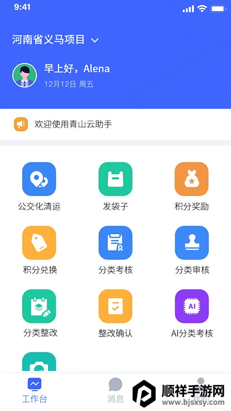青山云助手是专为政府和企业打造的工作协同软件,功能强大。有详细清运路线,能智能提醒工作完成、公交延时等,工作获积分可兑换物品,还能发布需求、查看垃圾分类知识,提升办公效率。