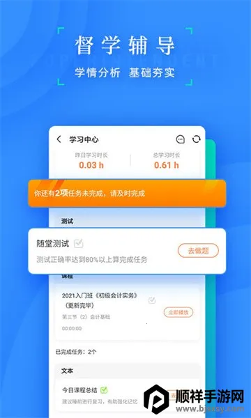 3. 学习体系完善:体系化教学服务,视频录播课程、名师直播讲解、配套题库练习、考前模拟考试、智能班级服务、实时答疑服务多位一体,助力轻松学习会计知识。
