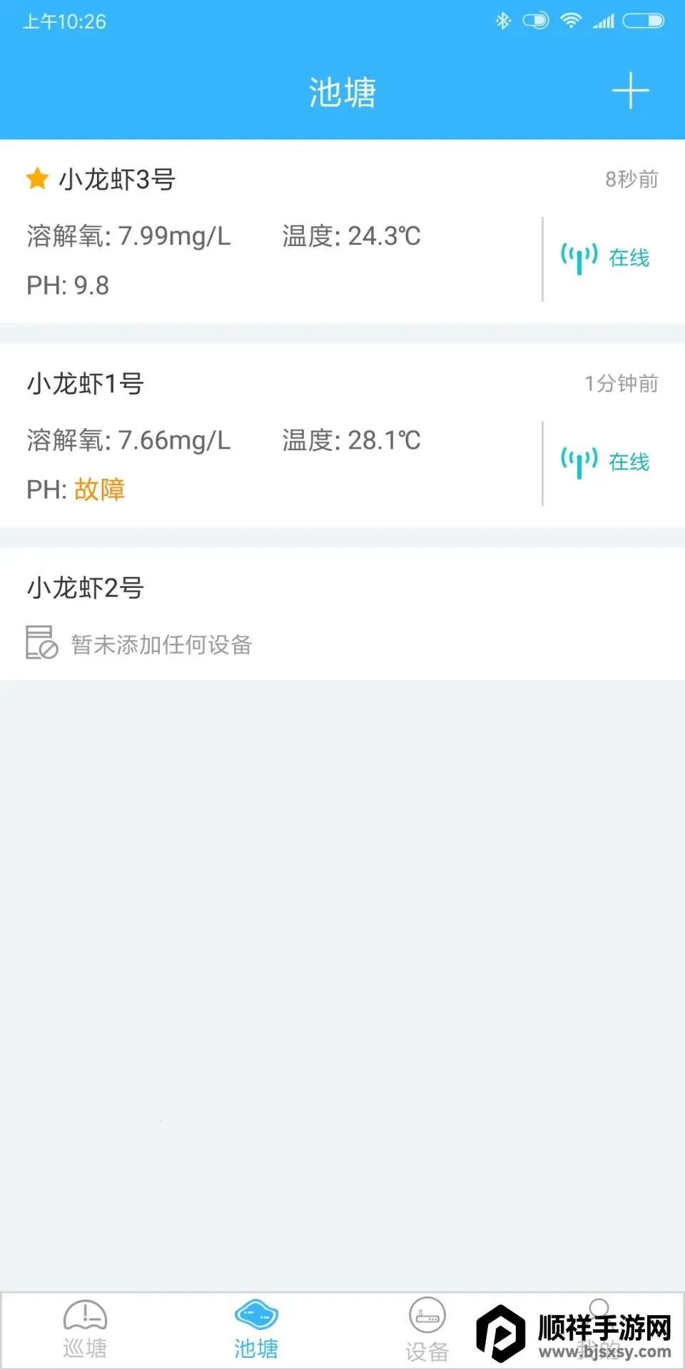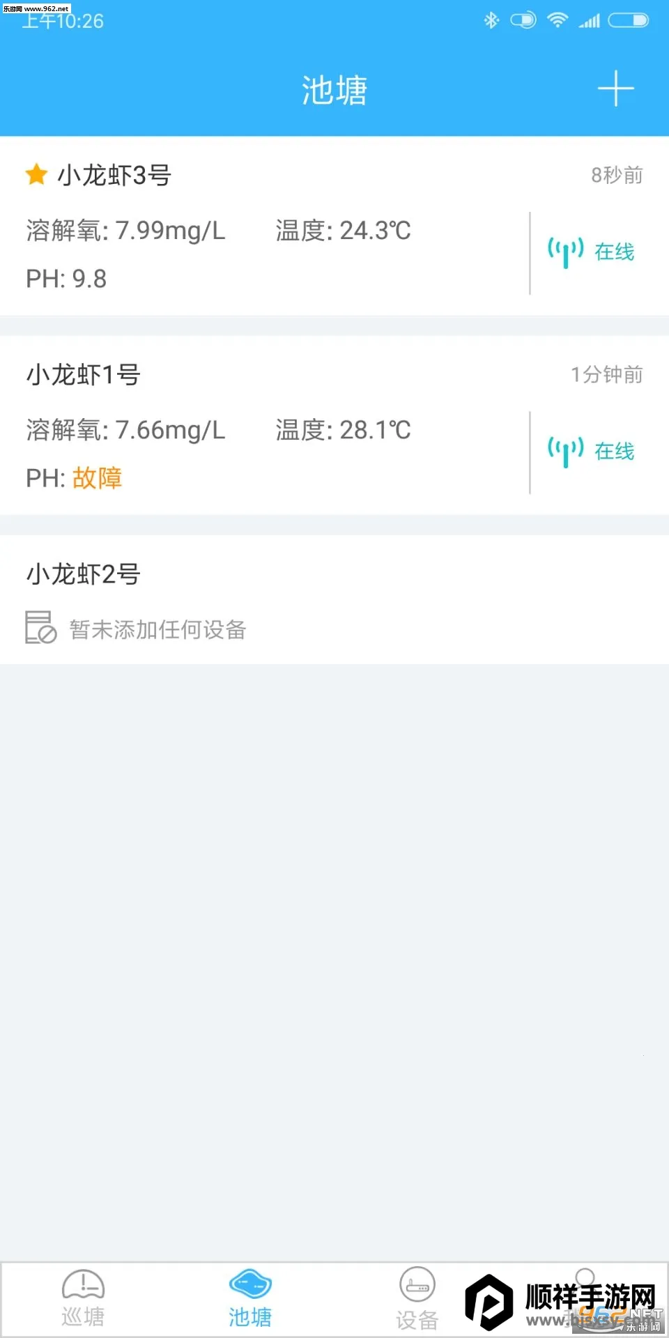 1. 数据全面呈现,能查看各个池塘的各种指标信息与水质情况,无论是巡塘首页还是池塘设备详情界面,都能精准获取关键数据,助您全面了解池塘状况。