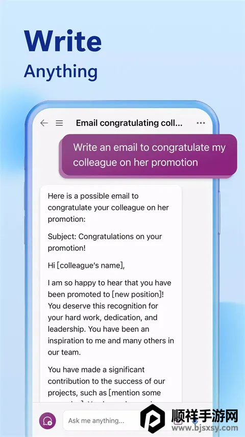 新必应 Bing 是一款超棒的搜索引擎软件。它功能强大,能快速帮你找到互联网上的精彩内容。不管是学习还是工作,都能满足你的需求。它采用最新技术,提供智能化搜索服务,弥补了 ChatGPT 时效性的问题。你可以像说话发短信一样进行搜索,它还能根据上下文回应你。