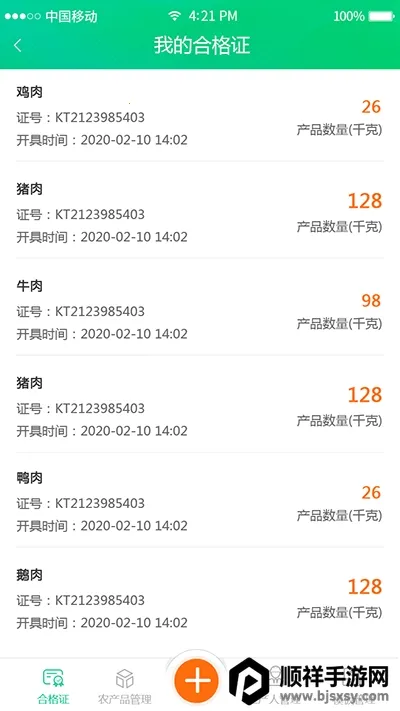 农质通最新版是一款超棒的农业相关办事平台软件,专为农业生产者打造。它能高效便捷地生成农产品食用证书,支持多种生成方式。你可以添加证书模板,多种录入方式任你选,比如智能语音识别输入,讲话就能创建合格证,还能轻松连接打印设备打印产品证书,消费者扫码就能获取产品信息。它能解决农产品追溯难题,帮你清晰查询农产品各类证书生产企业来源信息。软件特色满满,可在线绑定企业信息,方便农产品管理,创建证书超轻松。商品证书智能统计利于线上管理,吸引更多买家。支持手工录入和语音录入,让产品证书更准确,方便产品追溯。有了它,农产品管理更便捷,办公更灵活,能更好地了解产品质量,明确产品清单,是农业生产者的得力助手。