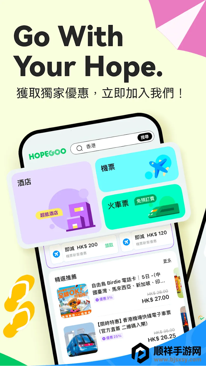 HopeGoo是一款旅行预订软件,为国内外旅行者提供酒店、机票、火车票等预订服务。支持多语言,覆盖全球多地。具备一站式服务、价格监控、信息管理等功能,操作简洁,还有多种优惠,满足多样出行需求。