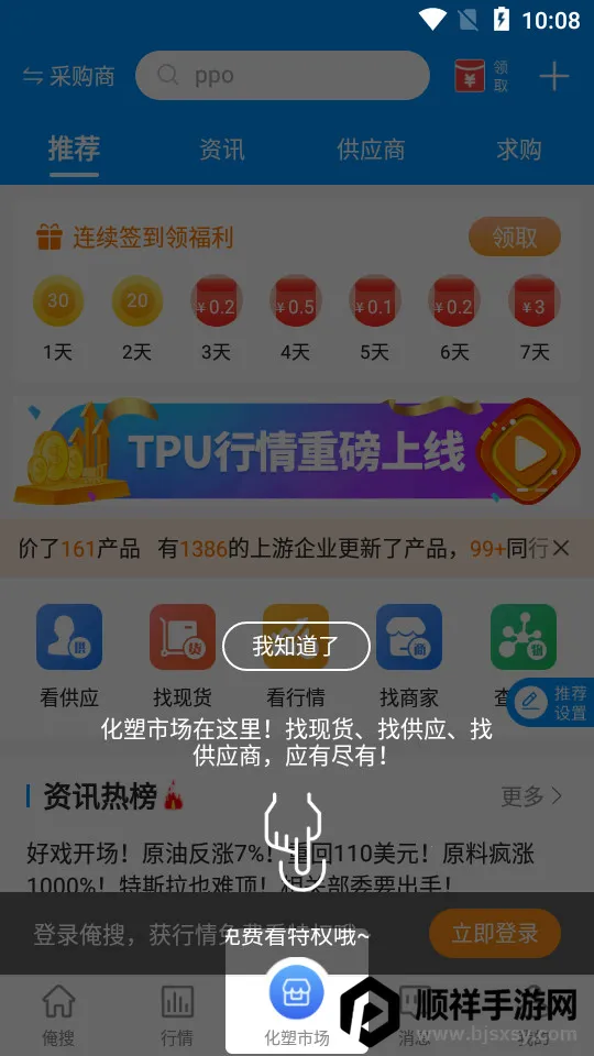 俺搜最新手机版是一款集塑价查找、关联工程师人脉对接等功能于一体的高效科技软件。由迪塔班克公司推出,针对塑化产业打造,覆盖多品类,提供关键数据,简化信息查找对接流程,为用户带来便利和效率。