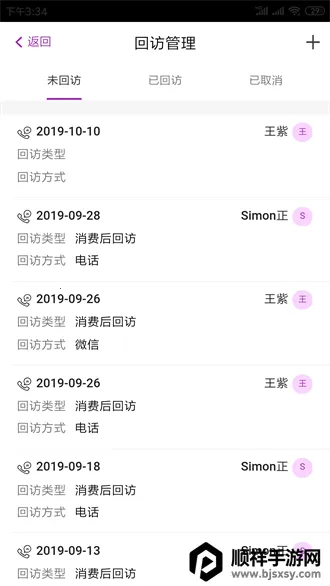 在日程管理方面,可依用户人数和时间安排回访计划,制定预约回访方案,科学合理规划日程,提高工作效率。能实时更新数据,涵盖意向客户、重点客户等,还能提供生日关怀,看到流失预警及时回访。回访形式多样,包括电话、微信等,清晰展示回访状态。