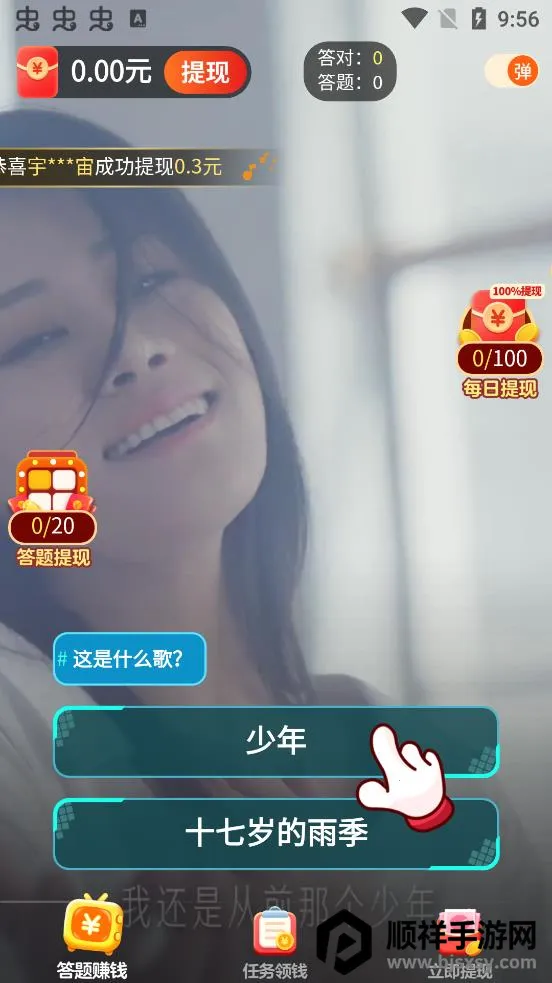 想通过玩手机赚钱?金曲刷刷app能满足你!它是一款超棒的视频听歌答题应用。这里有海量丰富的歌曲资源,能让你边看精彩视频,边听美妙歌声,还能随时参与互动答题。每看一条视频都有金币奖励,金币能兑换现金直接到微信,看的越多赚得越多。还有开宝箱、每日抽奖等活动,轻松就能赚取零花钱,轻松度过碎片时间。它的视频分类详细且更新速度快,各种金曲视频集锦,经典老歌、大众嗨曲、网络情歌、国际流行音乐应有尽有。不仅能让你沉浸在音乐的世界,还能通过互动答题找回青春美好回忆,感受自由自在。新用户直接送现金红包奖励,邀请好友一起玩还有红包拿。快来下载金曲刷刷app,开启赚钱又好玩的音乐之旅吧!