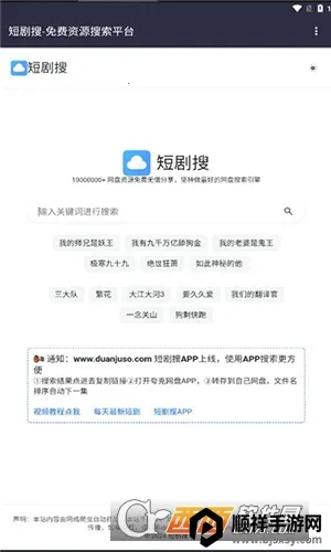短剧搜是一款免费的短剧搜索平台,汇聚全网丰富网盘资源。界面极简,功能强大,支持多云盘,输入关键词可快速找剧,无会员无广告,还能设置时间、过滤反缀词,满足个性化搜索需求。