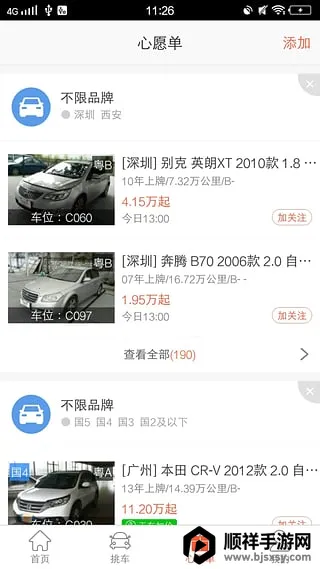 1. 车源丰富且分类清晰:输入品牌车系等关键词,能快速找到合适车源。系统按品牌分类车源信息,方便用户查找,还可自由收藏车辆与其他车源对比,让选车更高效。