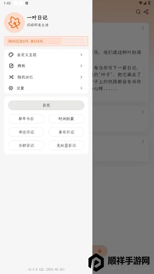 一叶日记是一款值得推荐的日记应用。它支持iOS和Android两大主流系统,界面简洁直观,功能丰富。其高度自定义主题功能,能让日记页面更具个性。卡片日记和自定义标签方便组织与展示思考回忆。支持添加多张图片、记录天气心情与位置,还有一键图片分享等实用功能。虽在某些细节上有待改进,但总体非常优秀。无论是记录生活点滴,还是深度反思,它都能满足需求,时间胶囊设计更是增添了记录的仪式感,是一款不容错过的日记应用。