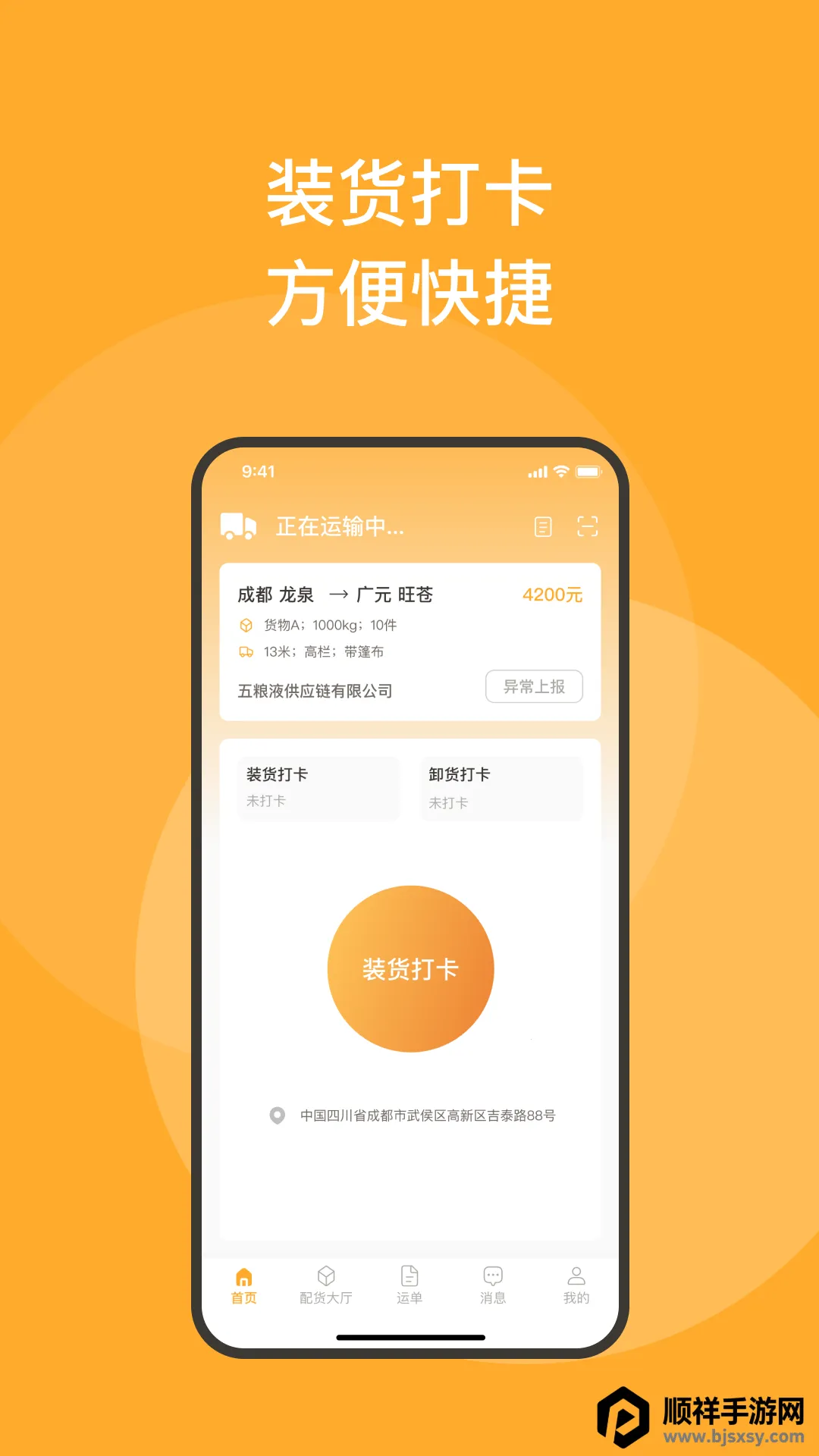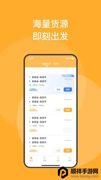 2. 操作体验超便捷:界面简洁直观,以列表展现货源订单,方便查看选择。支持手动创建订单,装货卸货可在线打卡,还有消息提醒及时推送信息。