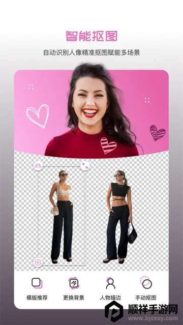 这是一款专为懒人打造的手机修图软件。操作简单,功能强大,能让你轻松成为修图达人。它提供海量滤镜,让拍摄更专业,还有各种免费模板。可自由切换贴纸,添加拼图模板,制作时尚海报。支持一键抠图,无论是人像还是物品都能精准处理,还能换背景。能自动识别人像,智能精准抠图,记录每日穿搭。成品轻松导出,完成后可一键保存,还能分享作品。快来体验,享受便捷修图乐趣,让图片制作变得轻松又有趣!