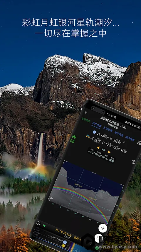 1. 精准推演运行轨迹:无论身处何地,输入机位与目标,就能精准推演太阳、月亮、银河、行星乃至彩虹、潮汐的运行轨迹,帮您锁定决定性瞬间。