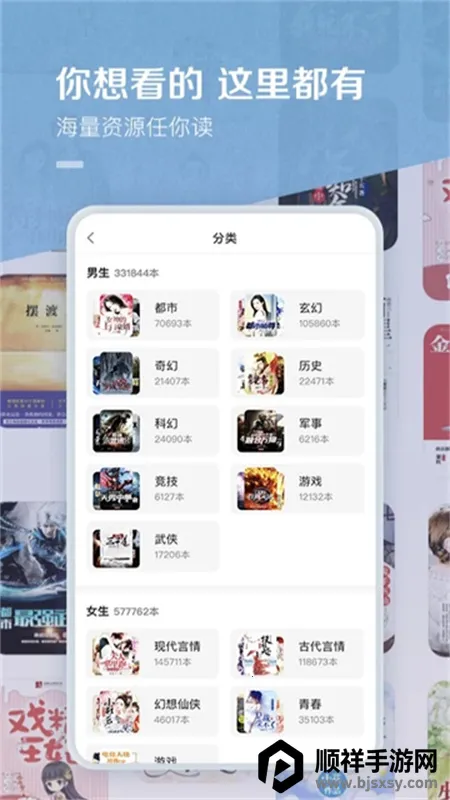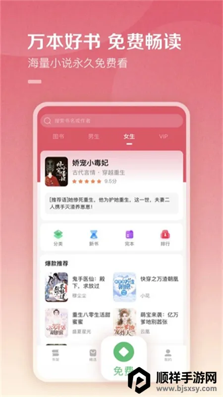 1. 正版免费,海量热门分类小说应有尽有,如都市、言情、玄幻等。