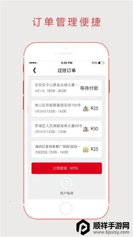 4. 操作便捷:界面简单,轻松学会,电话通知抢单,不费流量,顾客下单1秒推送到位。