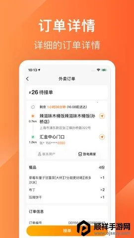 3. 订单管理超轻松:支持订单接单、信息添加删除等操作,还能清晰掌握每笔订单信息,包括查看订单详情、历史订单等,让骑手更简单地操作管理订单。
